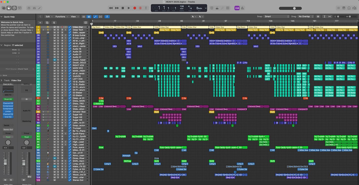 You can see how complex this song is in the Logic Pro screenshot below. Every slice. Every fade. Every placement.