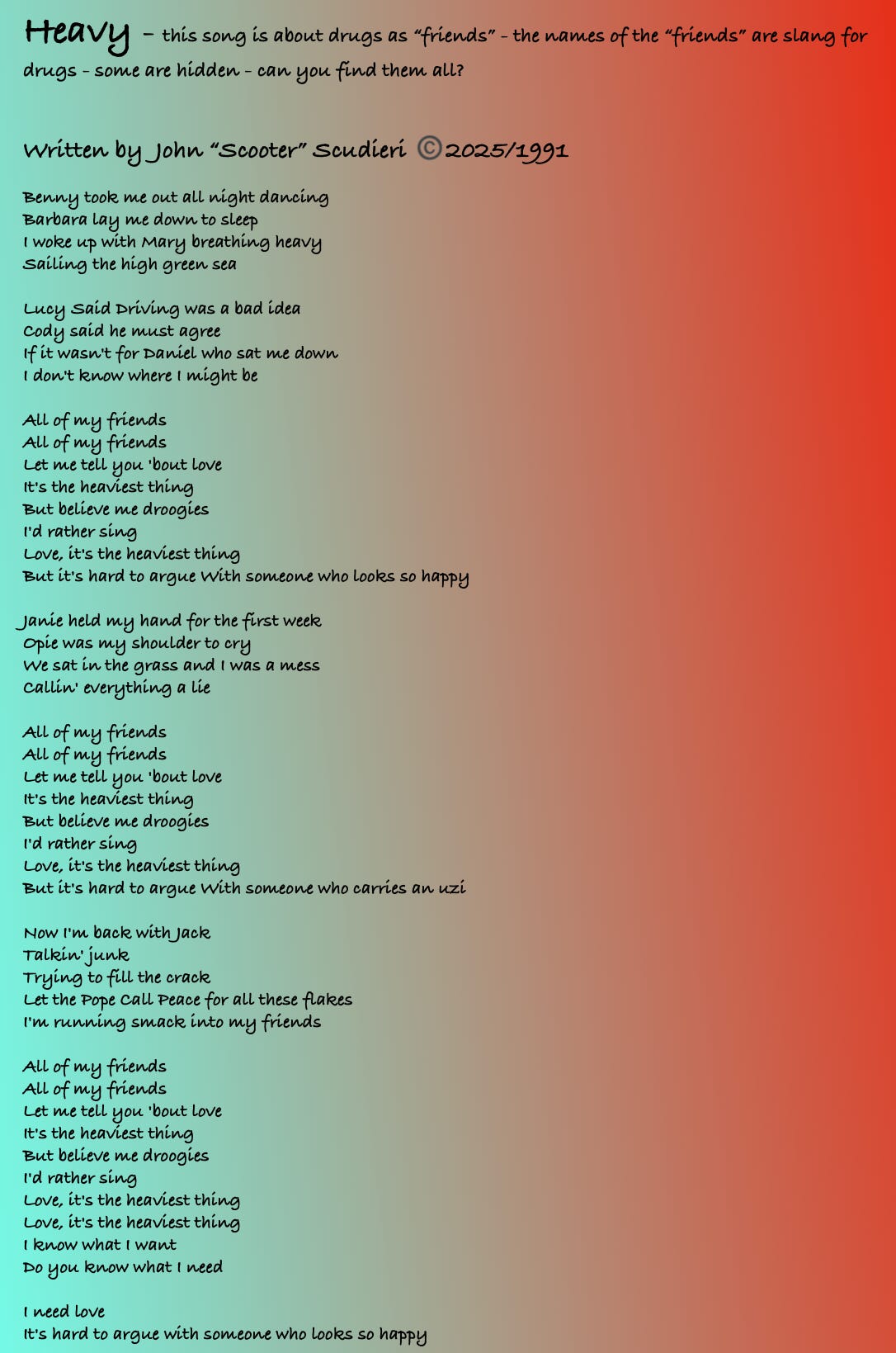 🎧 💿 Bonus Track from the unreleased ©1998 Acoustic Demos Volume 1: “Heavy”